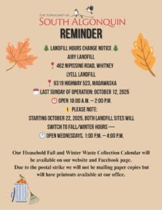 Fall/Winter Landfill Hours Change Notice Landfill Site Hours Fire Prevention Week October 5, 2025 – October 11, 2025 Community Survey