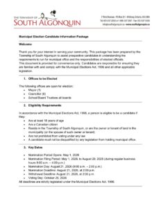 2026 Election Candidate Information View or download this Document Document Date: 2026-04-17 This Document appears on the following Articles: Nomination and Other Related Forms, Zoning By-Law Maps 12-43 TENDER NO. RFT.2026-01 Supply and Application of Liquid Calcium Chloride