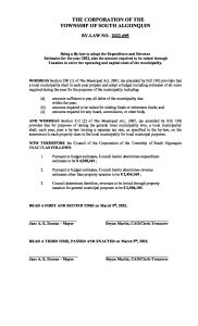 By-Law 2022-695 Establish 2022 Expenditures and Revenues View or download this Document Document Date: 2022-03-09 This Document appears on the following Articles: 2022 By-Laws, By-Law 2022-694 Confirm Proceedings of Council By-Law 2022-696 Tax Rates