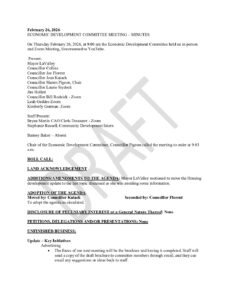 DRAFT Economic Development Committee Meeting Minutes February 26 2026 View or download this Document Document Date: 2026-02-26 Regular Council Meeting Agenda Package – March 4, 2026 2026 PROPOSED BUDGET – PRESENT TO COUNCIL