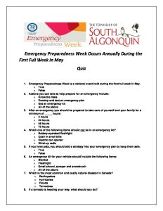 Emergency Preparedness Quiz View or download this Document Document Date: 2022-04-26 This Document appears on the following Articles: Additional Information and Links, Activity Sheet Water Safety Quiz Ashphalt Resurfacing (Hot Mix Paving) of McRae/Hay Lake Road