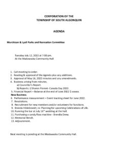 M&L Parks and Recreation Agenda July 12, 2022